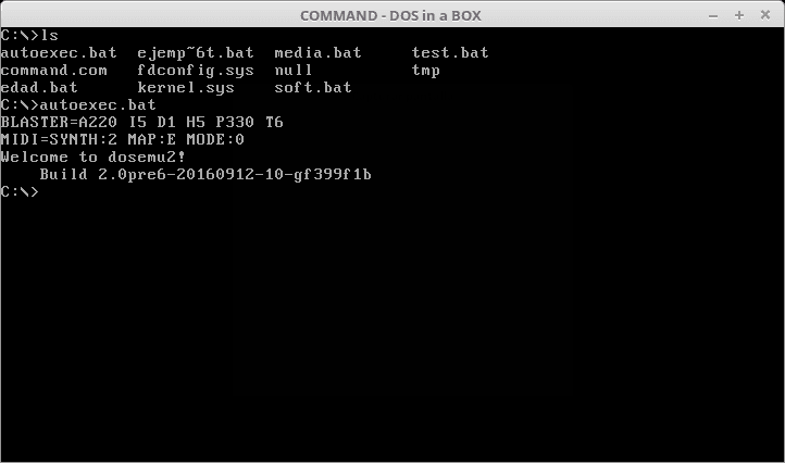inmediatamente se nos abrirá una ventana emulando el cmd, donde podremos ejecutar nuestros programas DOS.